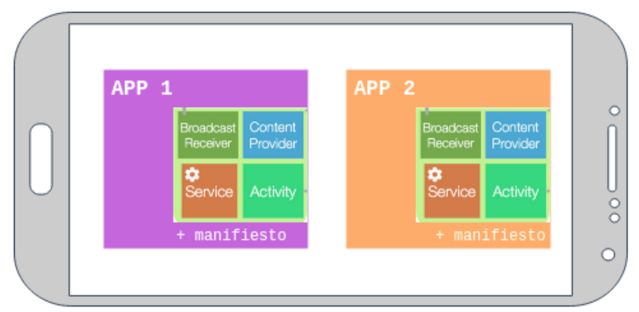 Servicios: se ejecutan en el fondo o “background” y son procesos de largo término, sin interfaz de usuarix. Se utilizan por ejemplo para descargar un archivo, sincronizar mails, reproducir música.
