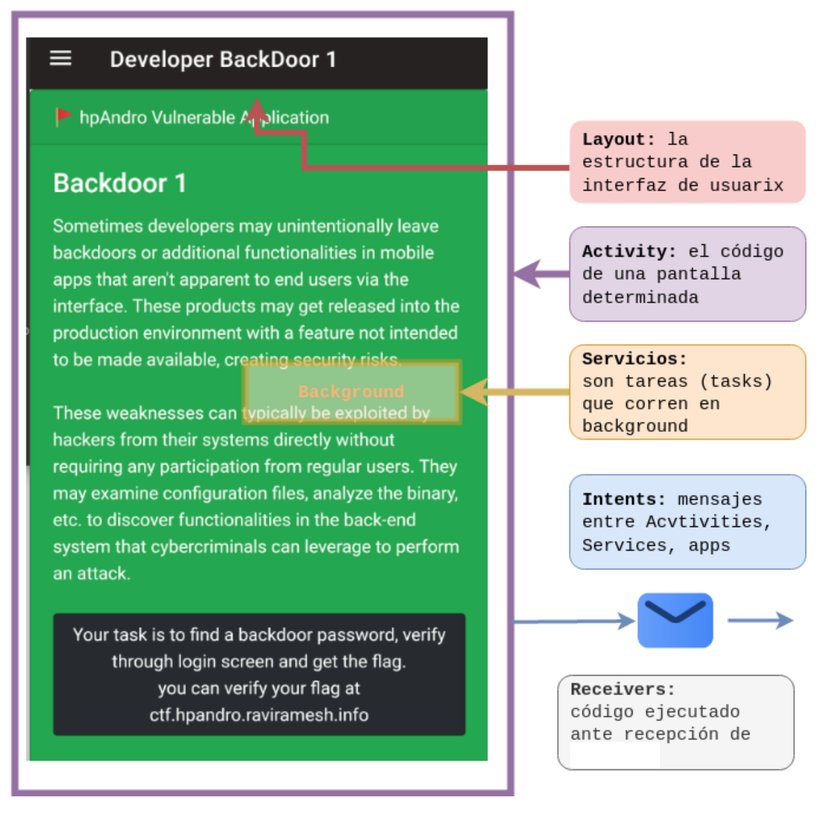 La guía de OWASP define a esta vulnerabilidad dentro de la categoría “M1 Uso inapropiado de la plataforma” y el Checklist la define como “Bypass de autenticacion via activities exportados”. Básicamente ésta vulnerabilidad de seguridad se presenta cuando una aplicación expone de manera insegura componentes como por ejemplo Activities. Cuando analizamos este bug debemos preguntarnos: