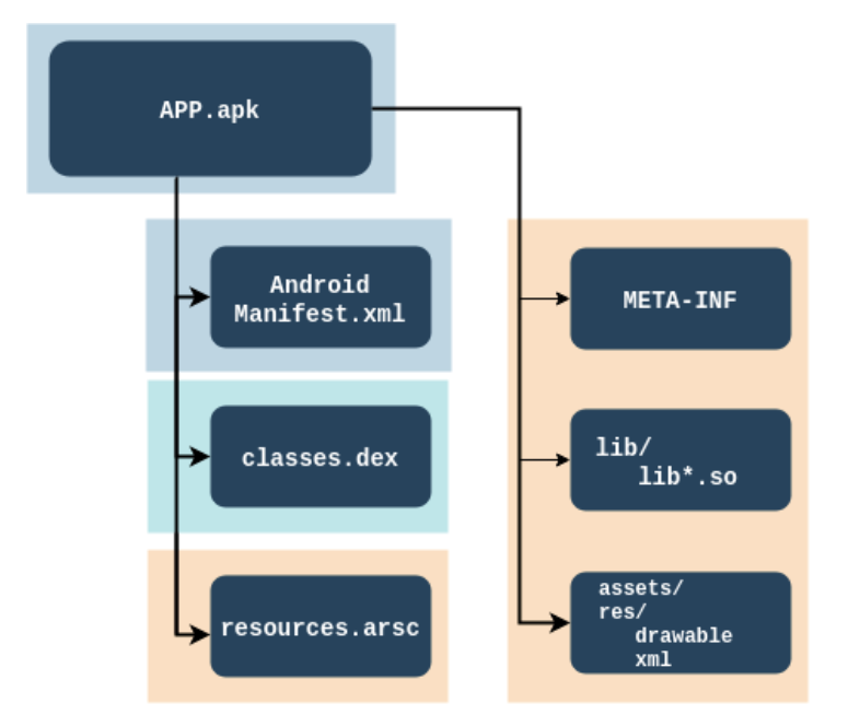 Si descomprimimos un archivo APK, nos encontramos con los siguientes archivos: