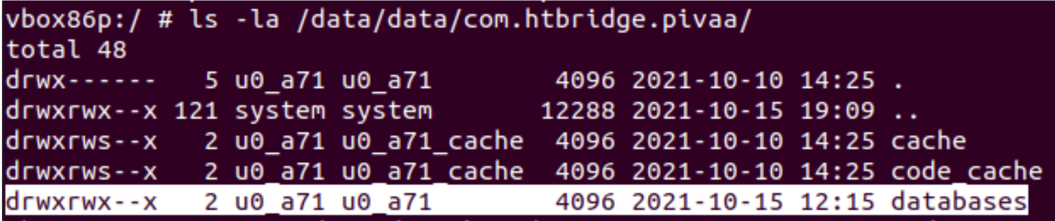 Teniendo en cuenta ello es posible observar como diferentes aplicaciones instaladas en un dispositivo cuentan con diferentes UserIDs (UIDs) en sus respectivos directorios privados.